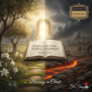 The day of God’s righteous judgment will disclose which kind of love we chose in this present life – a holy unselfish love directed to God and to the welfare of our neighbor or a disordered and selfish love that puts oneself above God and the good of our neighbor.